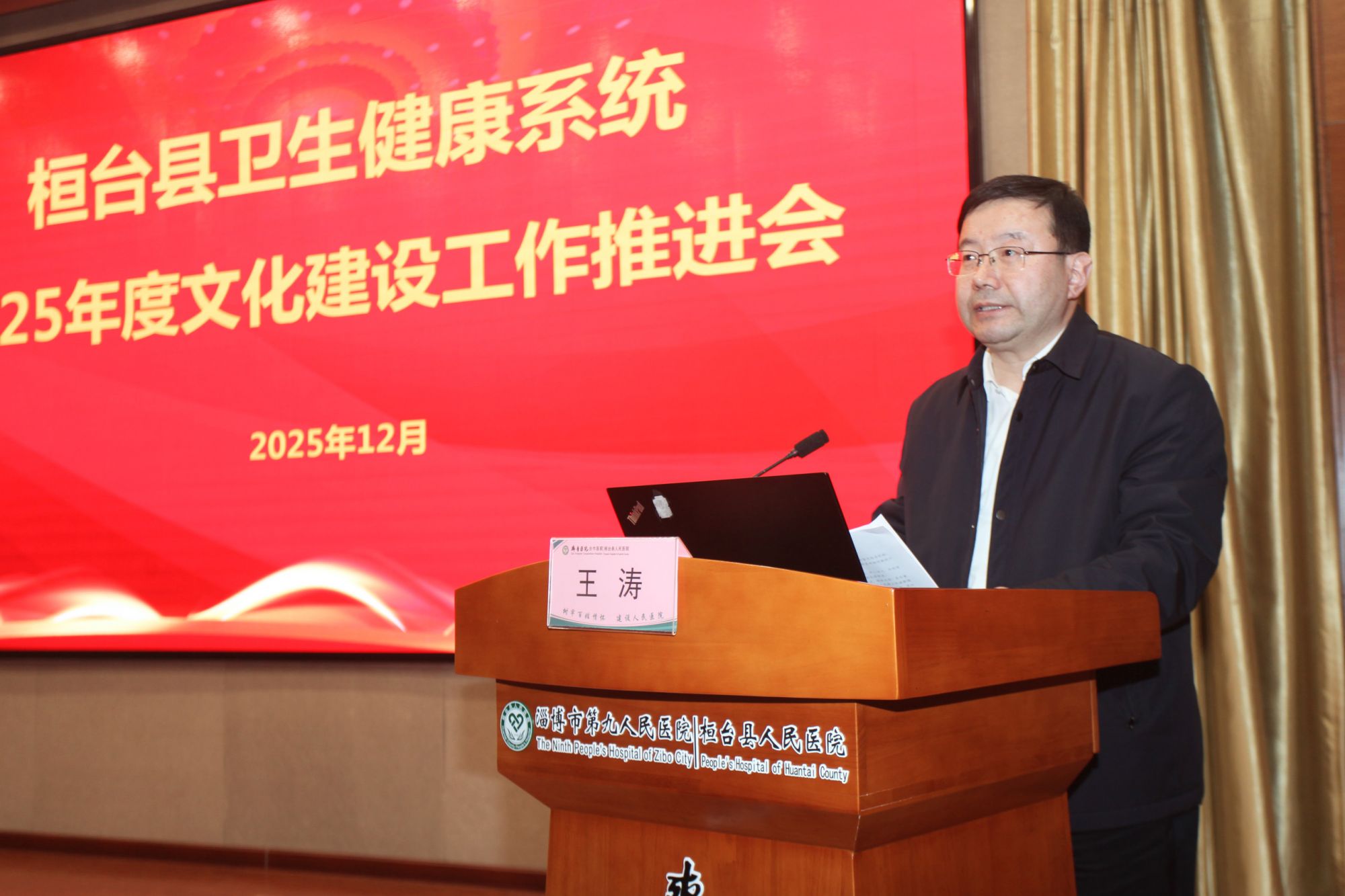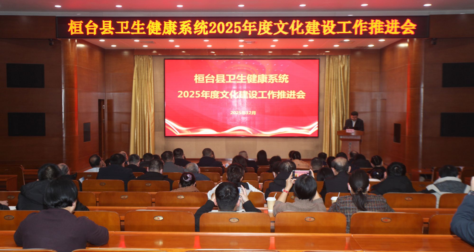 为全面总结我县卫生健康系统文化建设成效,部署下一阶段重点任务,推动文化建设工作走深走实,2025年12月30日,桓台县卫生健康系统文化建设工作推进会在我院视频会议厅召开。县卫健局党组成员、各科室负责人;各公立医疗卫生单位主要负责人、分管负责人和负责文化建设工作人员100多人参会。