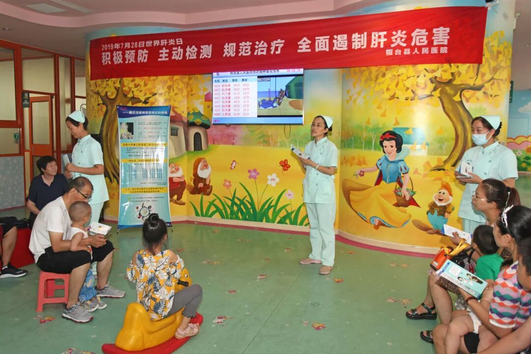 2019年7月28日是第九个“世界肝炎日”, 今年我国“世界肝炎日”的宣传主题是“积极预防,主动监测,规范治疗,全面遏制肝炎危害。”7月27日,桓台县人民医院在儿童健康服务中心进行了宣讲,号召群众积极行动起来,关注肝炎防治工作,共同抗击肝炎。