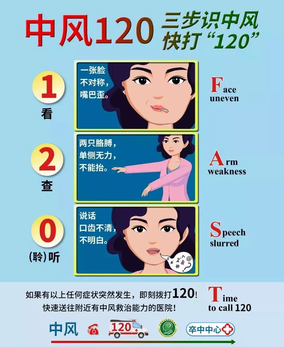 如果通过这三步观察怀疑患者是中风,可立刻拨打急救电话120,救要县医院卒中中心!