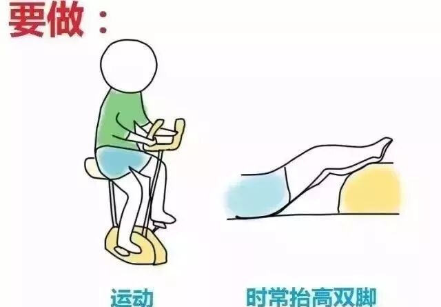 2.腿动起来,坚持适活动,避免久坐、以免影响静脉回流,避免用过紧的腰带、吊袜和紧身衣物;