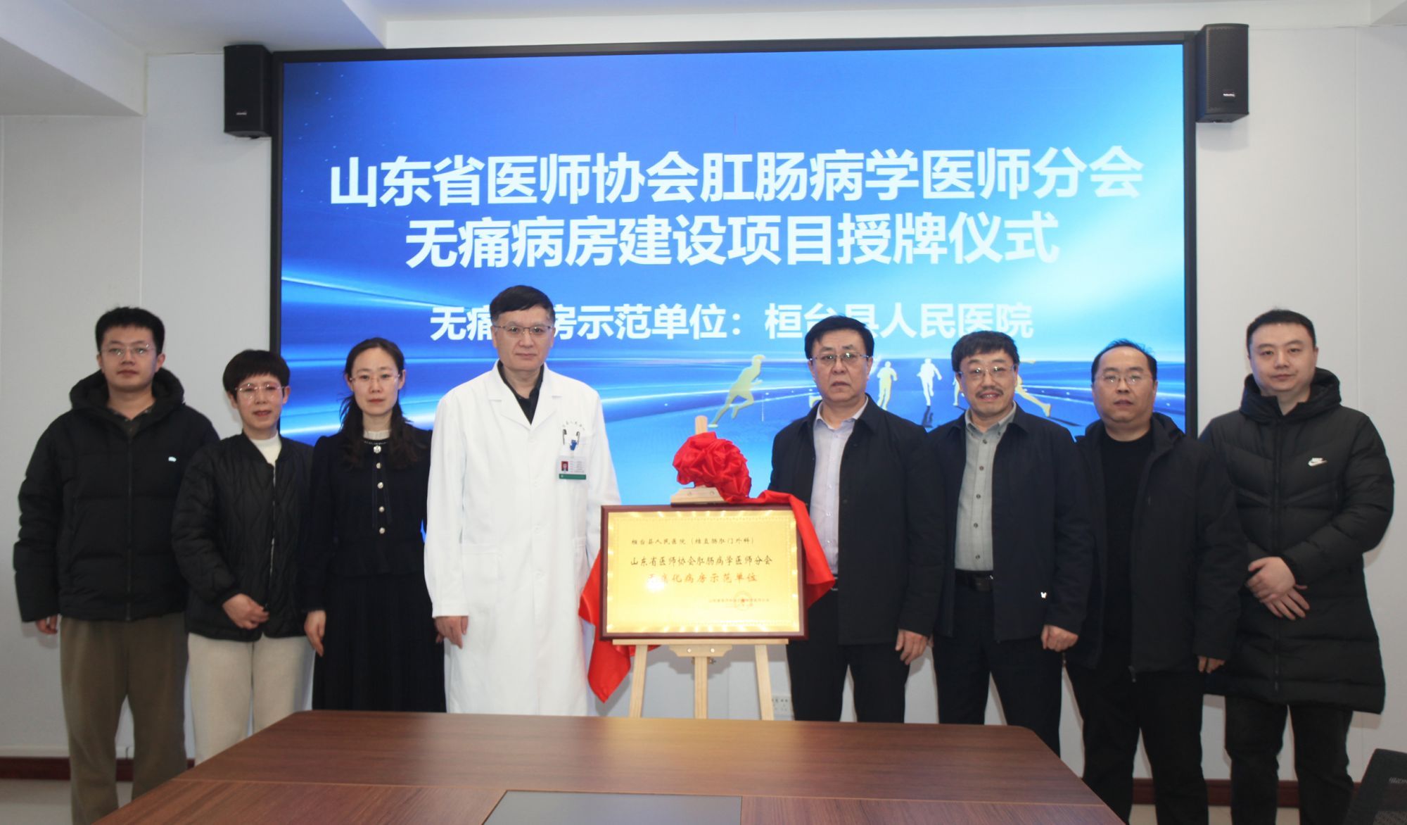 1月25日,山东省医师协会肛肠领域一体化无痛病房建设项目揭牌仪式暨学术交流会在我院举办。山东省医师协会肛肠病分会主任委员赵刚教授,青岛大学附属医院乔翠霞教授、孙美凤教授,院长张宝忠出席会议,医院相关科室医护人员参加会议。