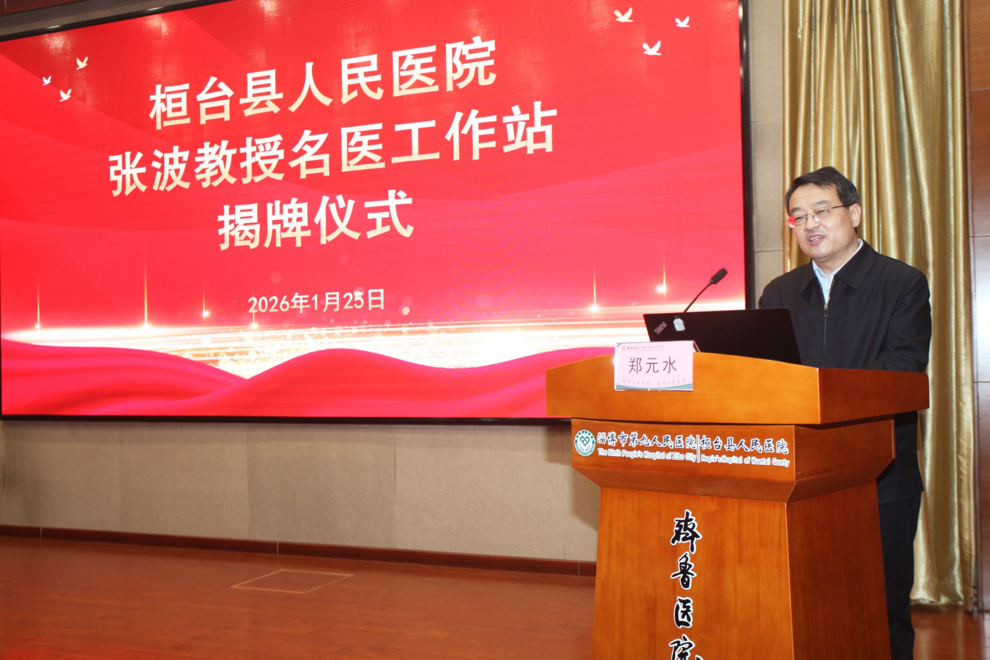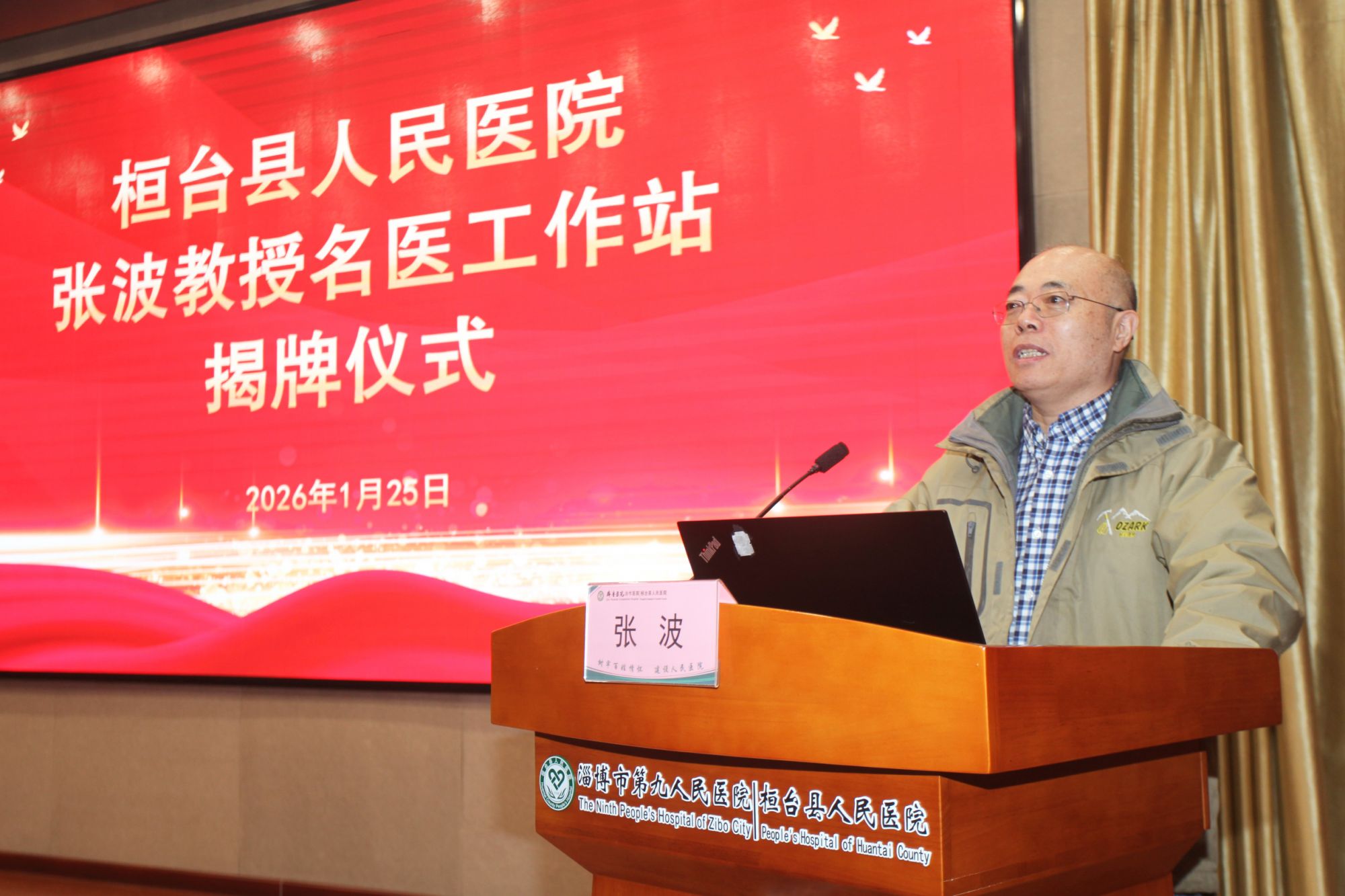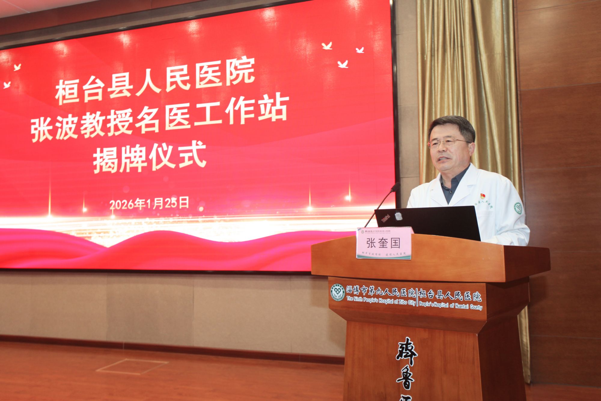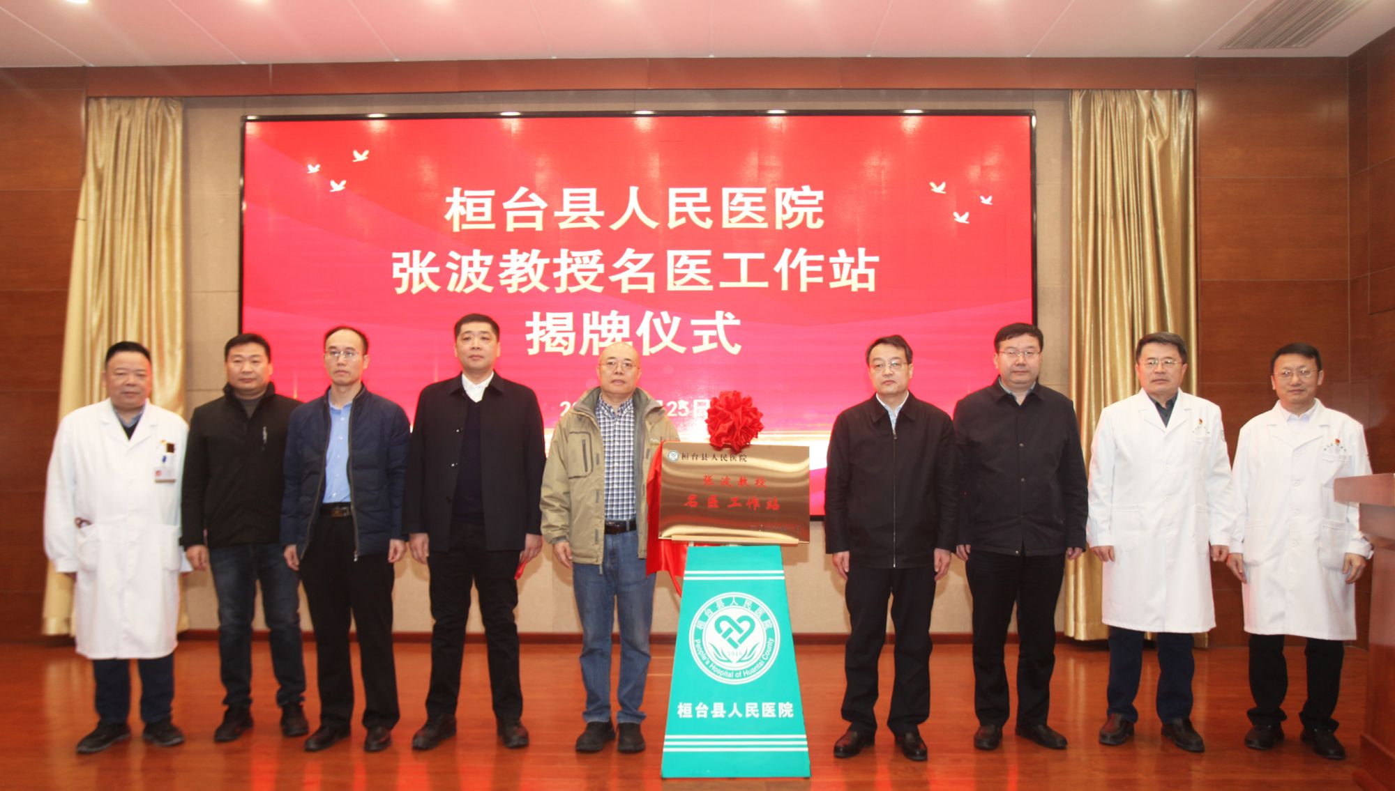 1月25日,原空军总医院副院长张波教授名医工作站揭牌仪式在我院举办。市卫健委主任郑元水、副主任闫声国,副县长樊涛,县卫健局局长王涛、副局长成钢,院党委书记张奎国出席仪式。院党委成员,院长助理,各部门、科室主任、护士长200余人参加活动。
