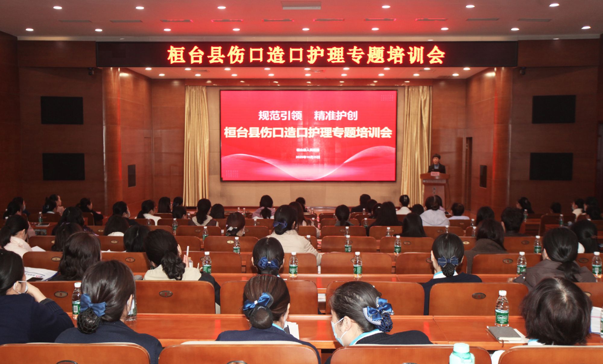 为促进学术交流与合作,提高临床护理水平,10月25日,桓台县伤口造口护理专题培训会议在我院举办。滨州医学院附属医院杨翠丽教授、济南市中心医院赵文兴教授受邀参会,全县各级医院护理部主任、护士长、护理骨干及从事伤口造口护士150多人参加培训。